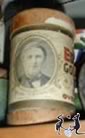 A small variety of old packaging boxes, tins and bottles. Several